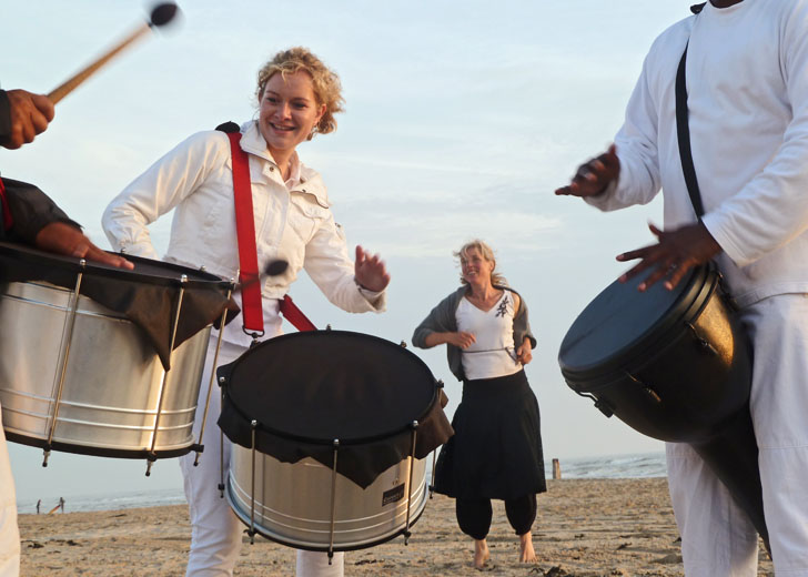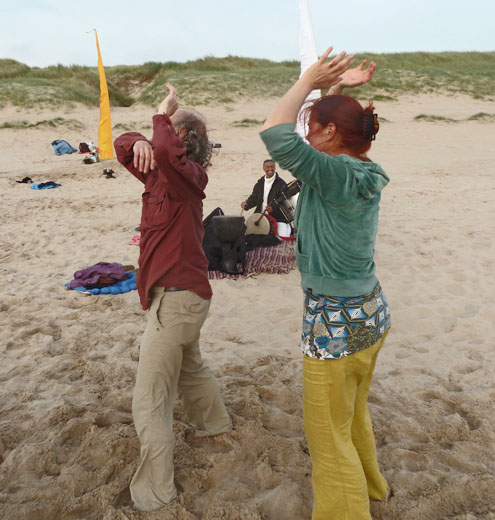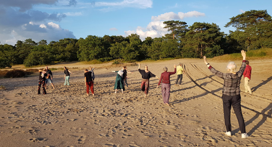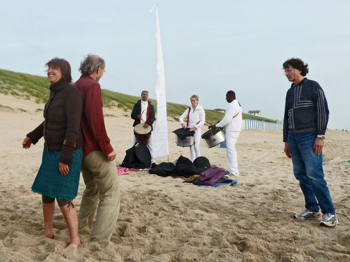 Met onze vorige groep in Bergen hadden we jaarlijks ter afsluiting van het seizoen biodanza op het strand met levende percussie onder leiding van Chris Colleye.