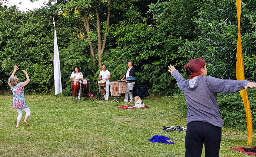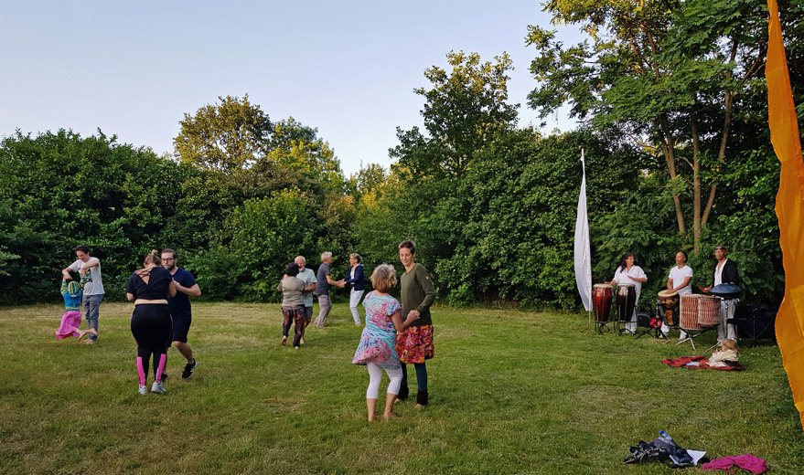 Ook dit jaar konden we op de laatste avond voor de zomer weer buiten dansen. En als altijd met levende percussie onder leiding van Chris Colleye.